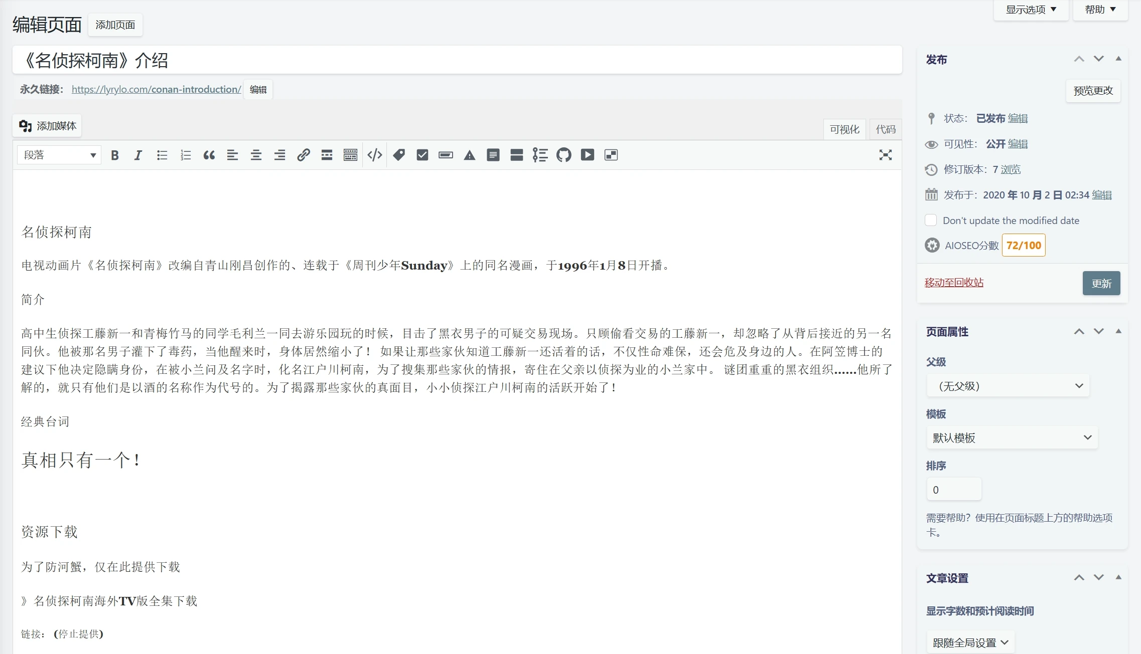 刚开始建博客,不知道该写什么,因为当时自己一直在追柯南TV版,所以发的都是关于柯南的一些东西。但后来担心侵权收到律师函,因此撤下。